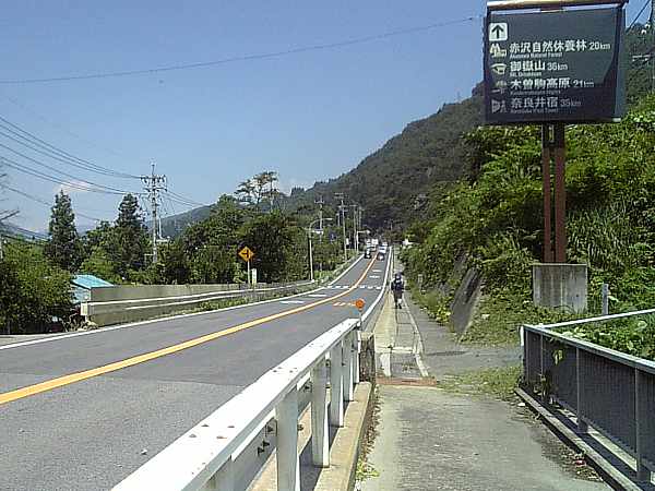 川を渡る手前に「木曽古道」とかかれた三叉路があるが、ここは直進。