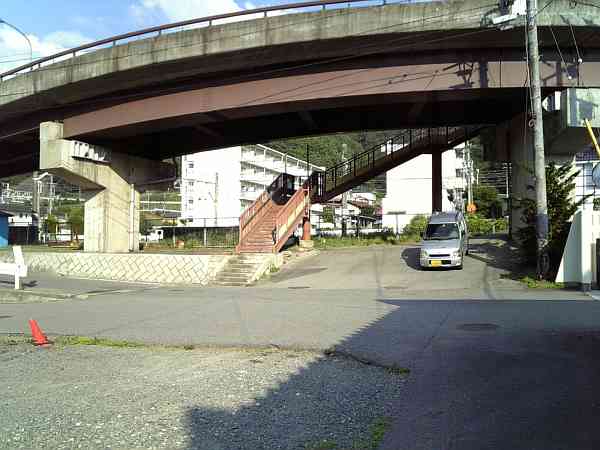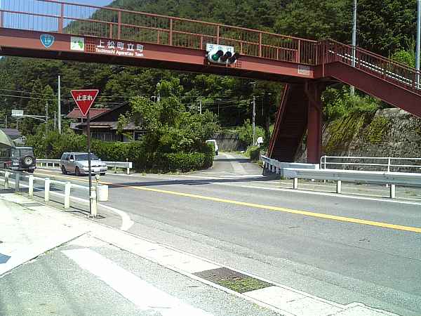 上松駅前信号の少し手前にある茶色い歩道橋の横へ、旧国道に沿って合流する。