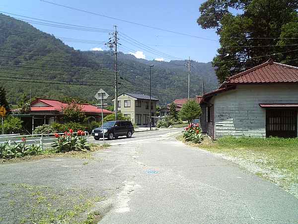 坂を上り、集落を進むと再び下って国道に出る(左・右写真)。このあたりは中央線のトンネルの上らしい。
