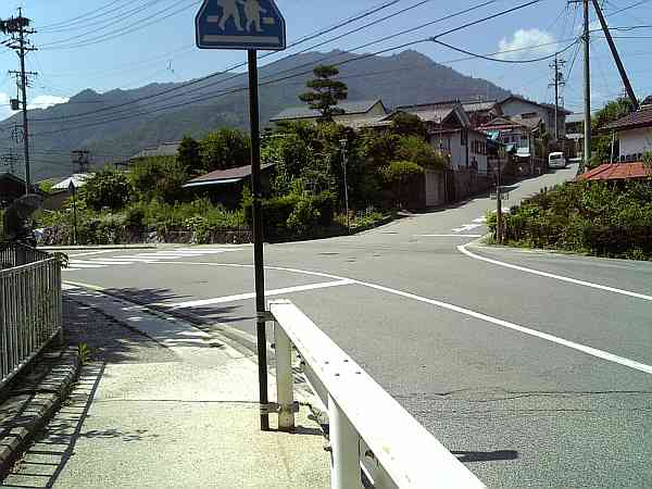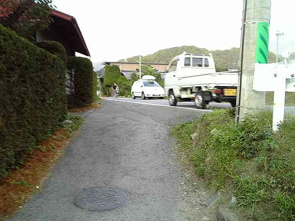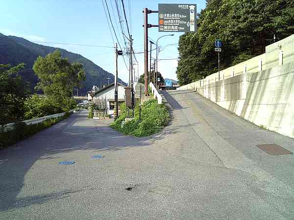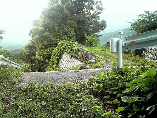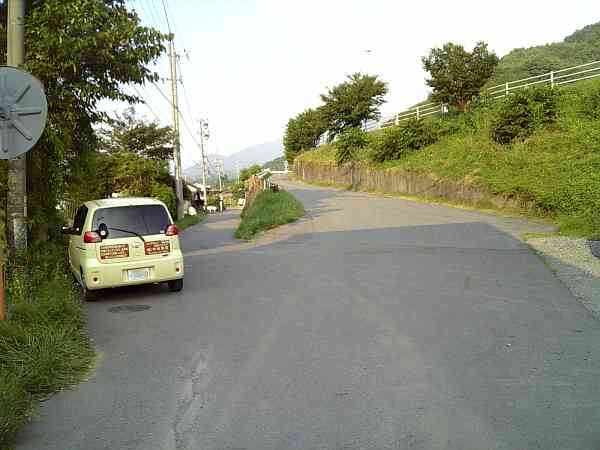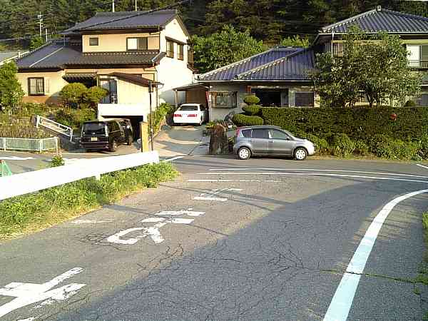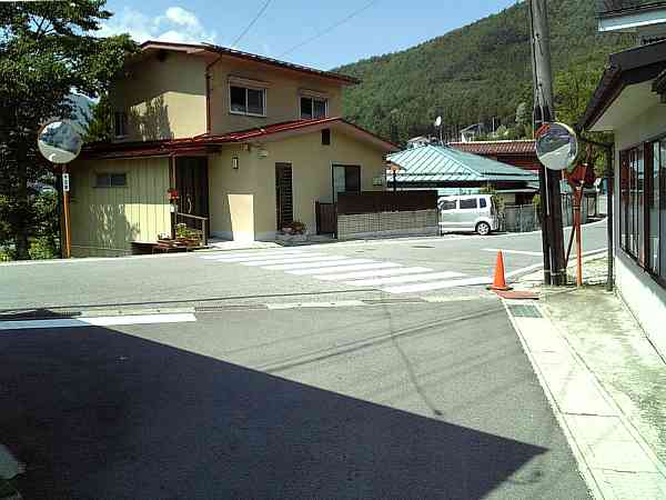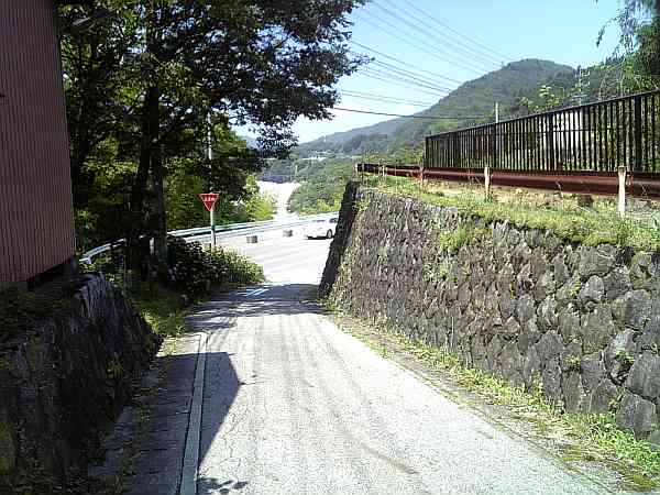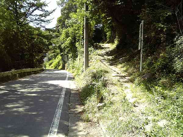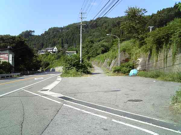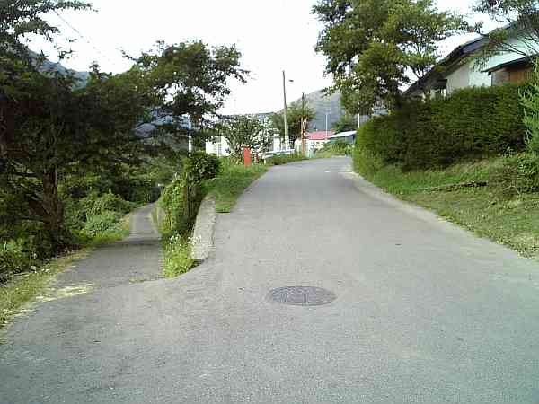 非常に分かりにくい道であるが、今まで来た道が右カーブを描きわずかに上っていく所にカーブミラーがあり、