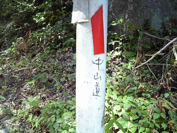案内らしい案内はないが、これが中山道である。(ウォーカーが好意で付けた印がある)