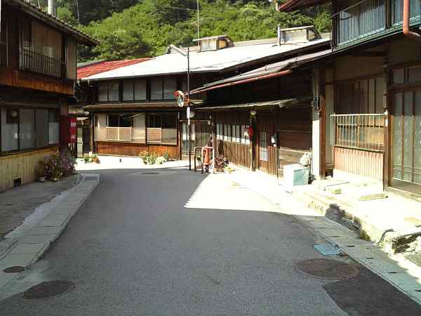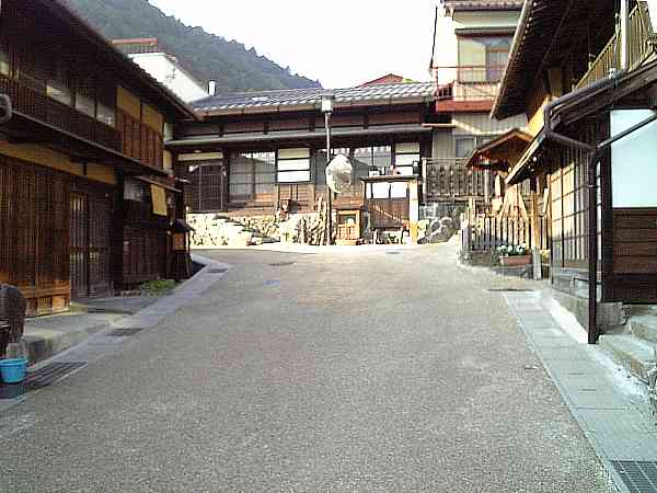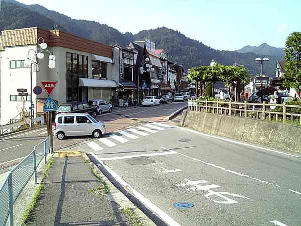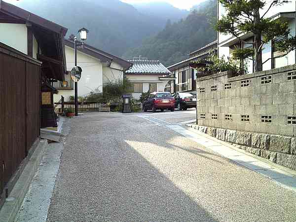 橋の向こうは宿場町らしい風情(右・右写真)。突き当たりをもう一度左に折れる。