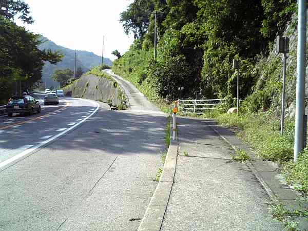 あとは、山肌に沿って旧国道の右側歩道に進む。