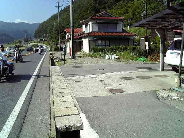 山肌にそって右カーブしているため、右側は車両がぎりぎりインに入って来て危ない。