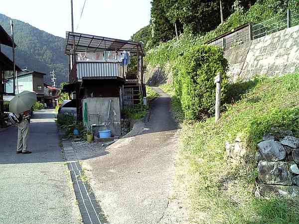 「塩渕一里塚」を過ぎた集落の中程に、山側へ上っていく脇道がある(右・右写真)。