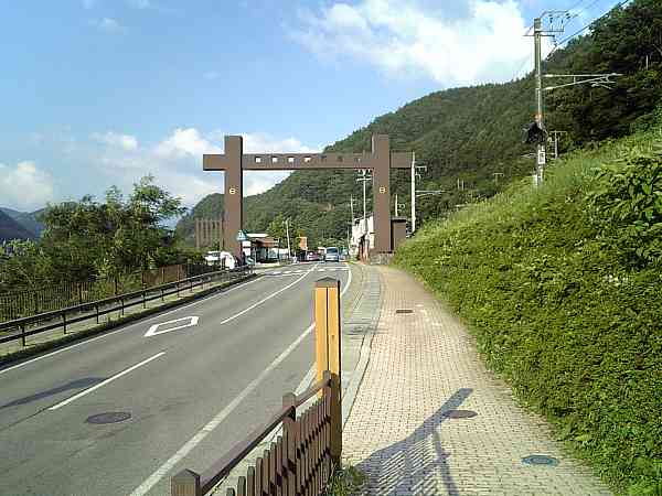 関所を(無事)通り抜け下っていくと、東京方面から来られた方を迎えるゲートがそびえている(左・右写真)。
