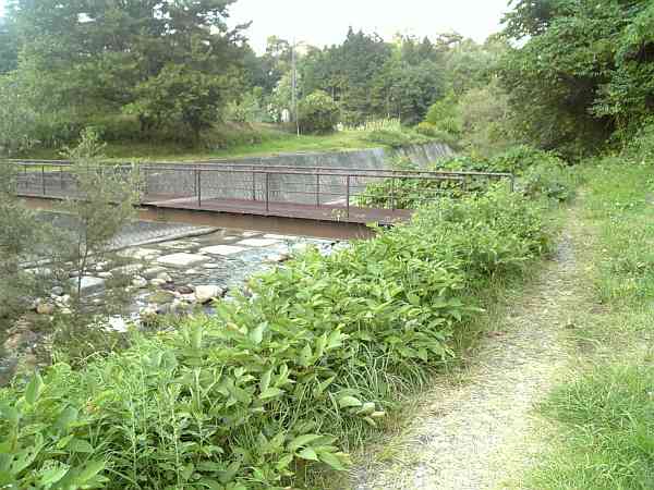 前の山がぐっと近づいた頃、橋を渡りきったところに