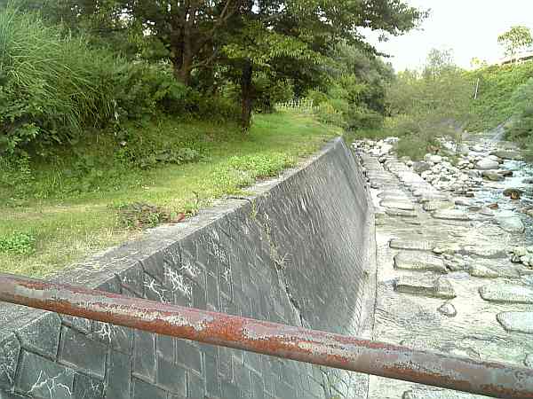 渡ったところは、もう道とはとてもいえない。ただの堤防の上(右・左写真)。