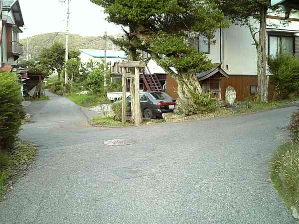 右へ取っていくと十字路に来るので直進する(右・右写真)。小さな鳥居と祠がある。