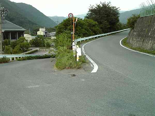 歩道橋を渡ってさらに山沿いを進んでいくと、左に大きく弧を描いて又国道に出る(右・右写真)。