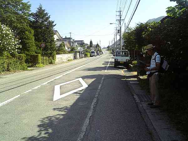 19号線を渡り(横断歩道はない)、国道の右側歩道を進む。
