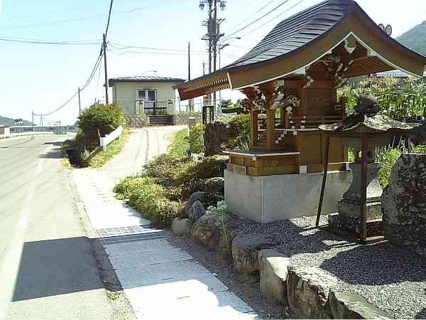 宿の外れまで来ると、立派な祠と石像がいくつも並んでいるところへ来る(右・左写真)。