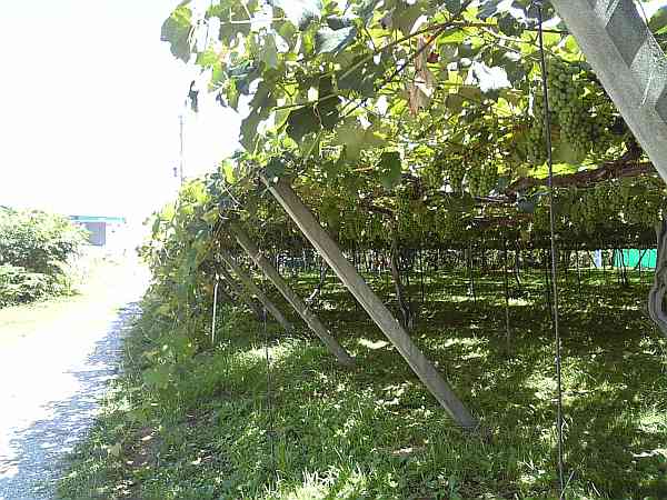 葡萄園の中を抜けて行くと(左・左写真)、又国道に合流するので右側歩道を進んでいく。