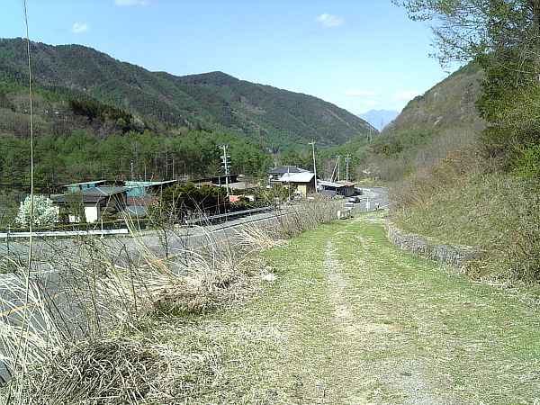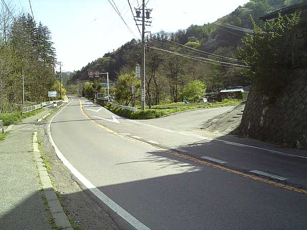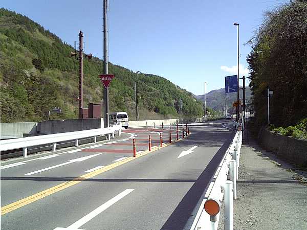 目の前の車道の先がT字路になっていて、「新和田トンネル」から下ってきた国道142号線に当たる。