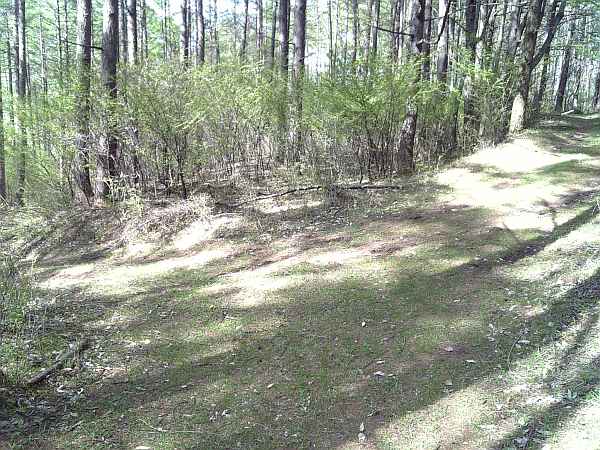 少し入ったところで、林道と斜めに交差しているが直進である(右・左写真)。