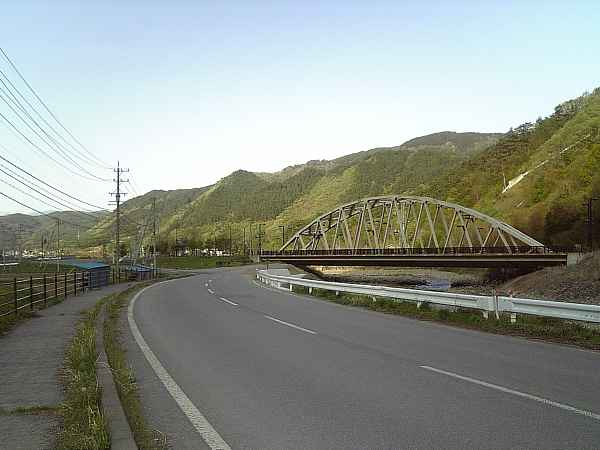 142号線の側道をしばらく行くと、橋の手前を川に沿って右へ迂回する(右・左写真)。