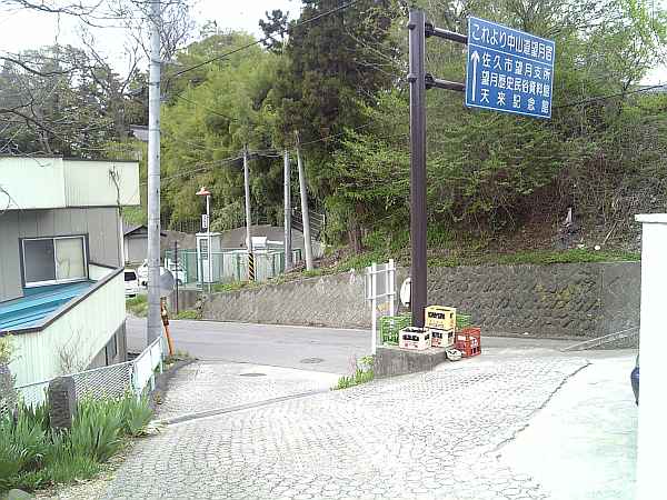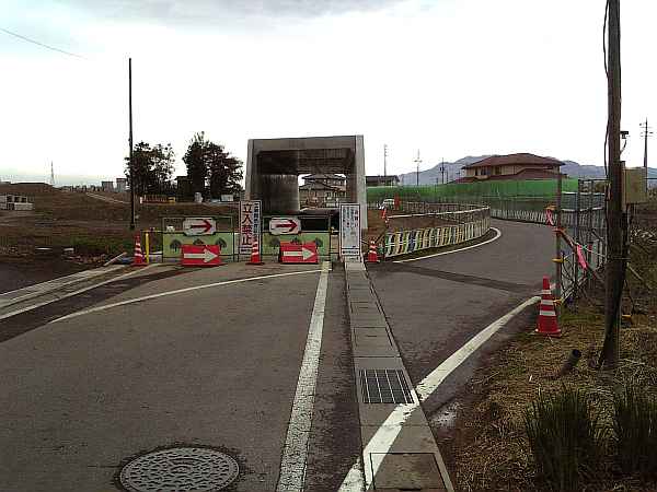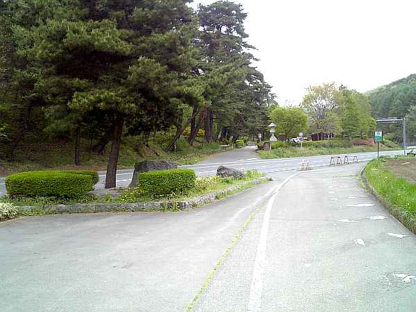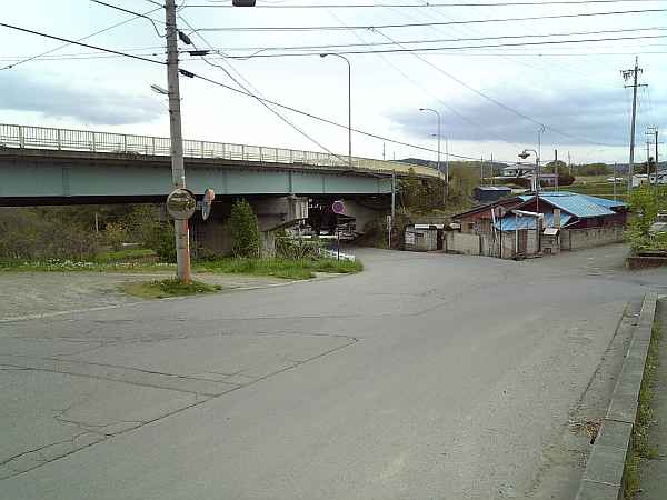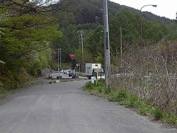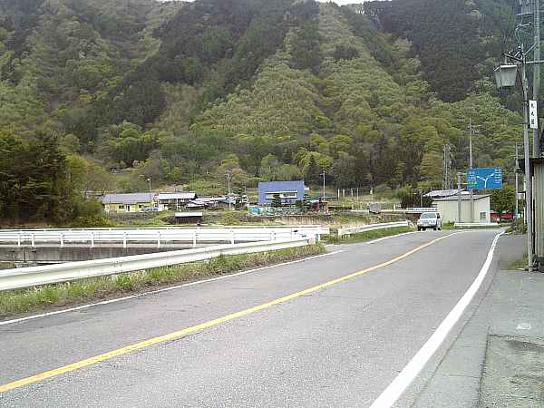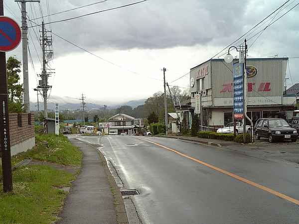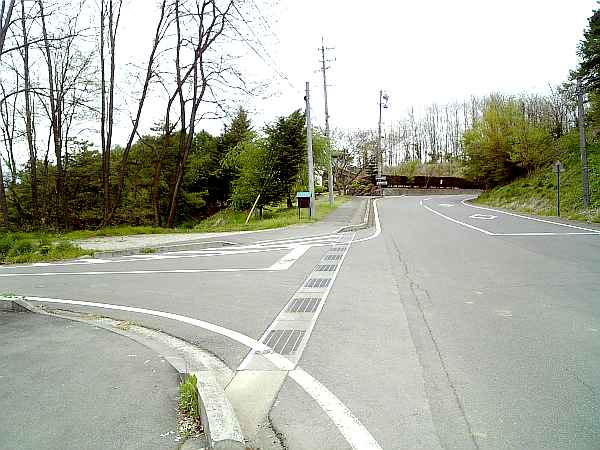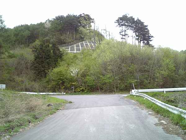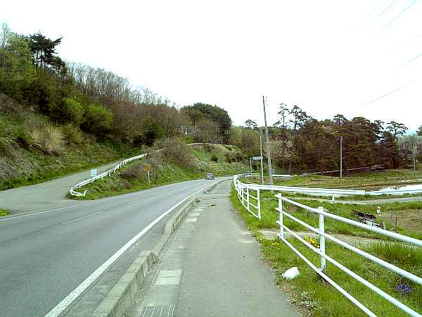 県道をどんどん行くと町の外れで右にカーブし、緩やかなスロープを上がっていく。