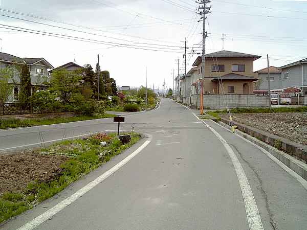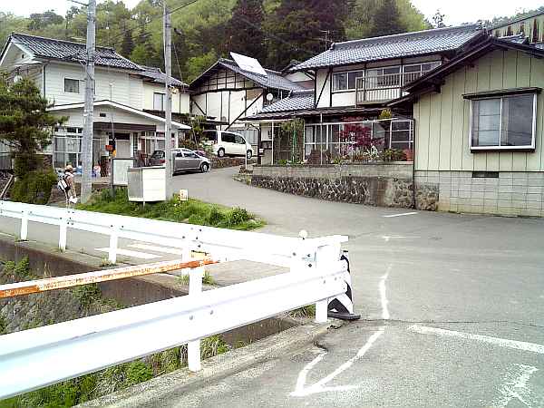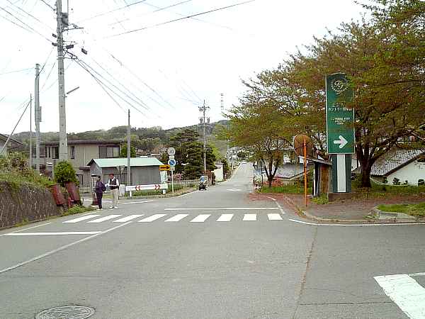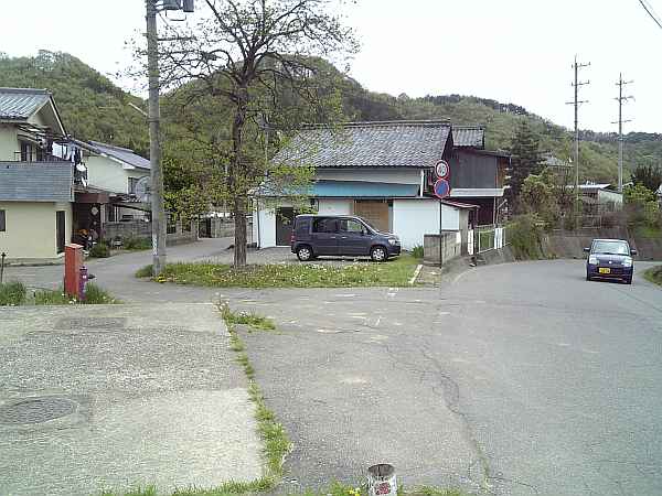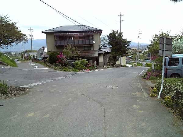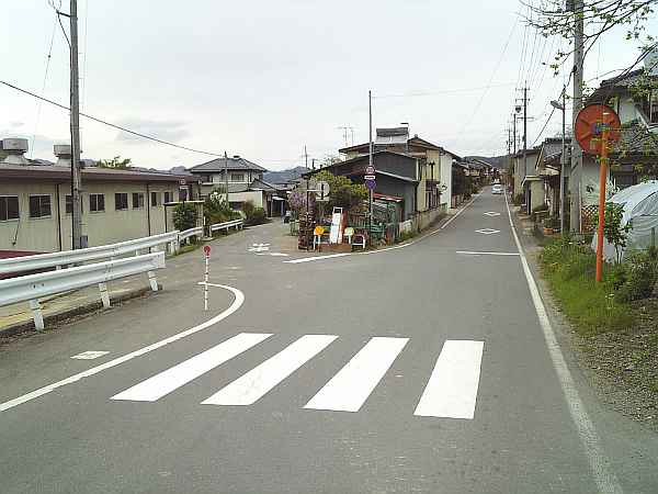 町外れの信号で五叉路になっているので進行方向右脇の細い道に入る(右・右写真)。