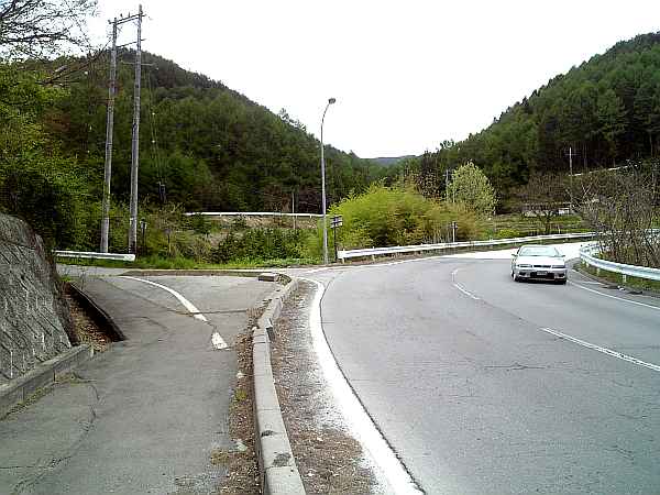 信号からすぐ、右へカーブして下り坂になっている所がある(右・左写真)。