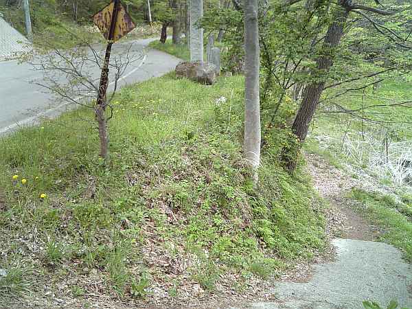 旧国道に上がってすぐに、まっすぐに行く脇道(右・右写真)があるが、ここはアスファルト道を蛇行しながら上る。