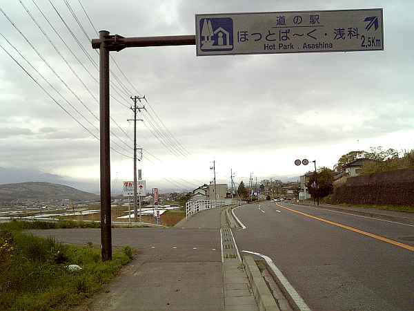 ゆったりとした坂を上がりきると「道の駅ほっとぱ~く浅科2.5Km」の標識がある。この下を左へ下りる(右・右写真)。