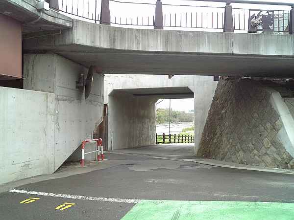渡りきったところの階段を右に下りて、今来た橋の下をくぐる(左・左写真)。
