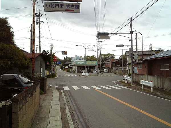 続けて2つ3つ交差点があり、この信号(御桐谷)で右が役所など町としての中心、左直進が宿場の中心である(左・右写真)。