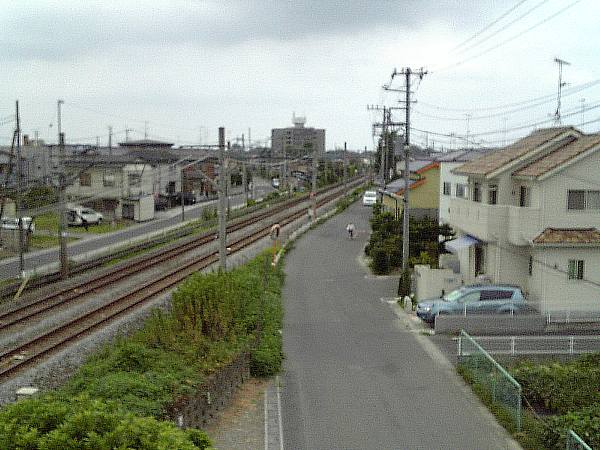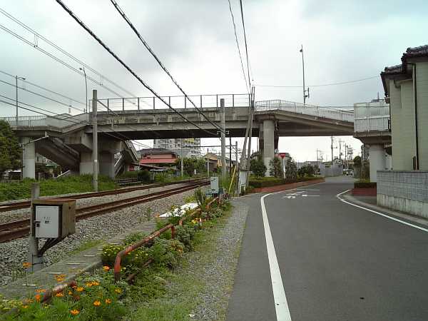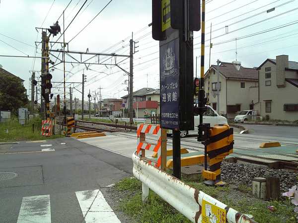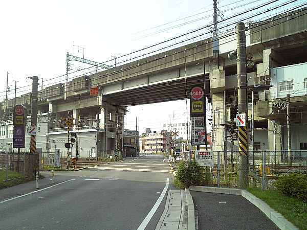 県道から離れ、NTTの右横を通って踏み切り脇に出る。