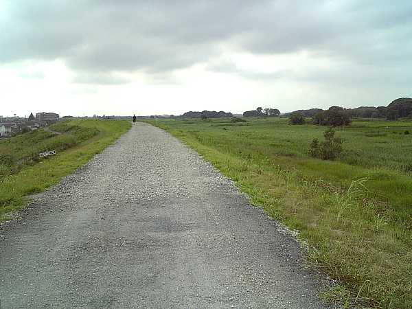 左は車が通り、堤防の中腹を行くが、右は一番高いところ(だんだんと堤防は高くなっているそうだ)の散歩道のようになっている。