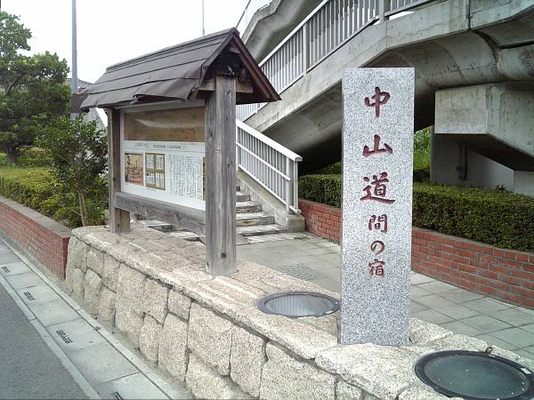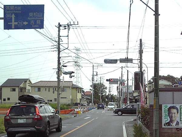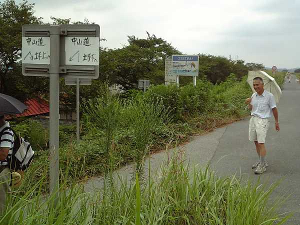 通りかかった自転車のおじさんが、「中山道はまっすぐだ」と?。我々も歩道橋を渡るとの情報を持っていたので直進する。