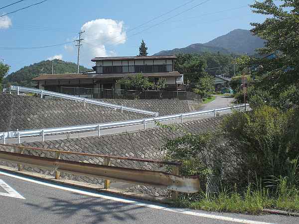 ここは注意が必要である。まず、国道19号線の向こう側の小高いところに鳥居が見えるはずである。
