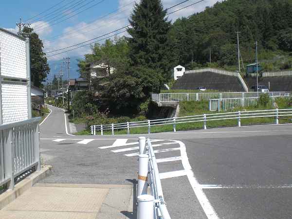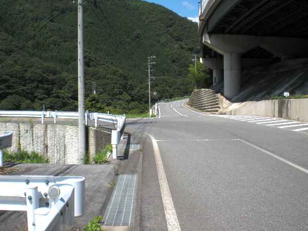 少し先の三叉路。(右・右写真=12:07) 左はそのまま橋梁となっており、これでもかなりの高さがある。もちろん直進。