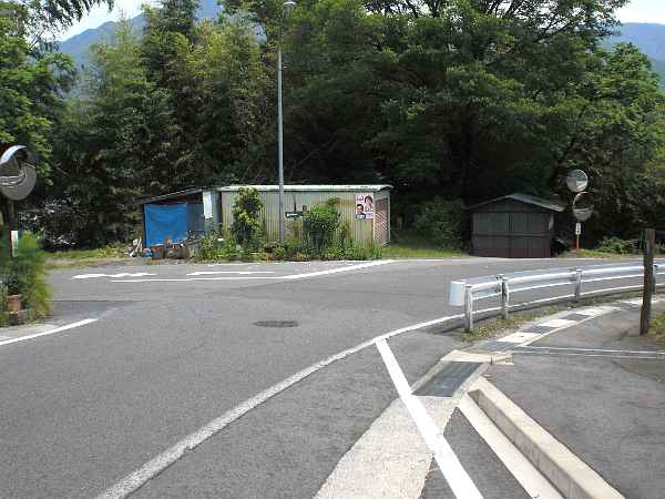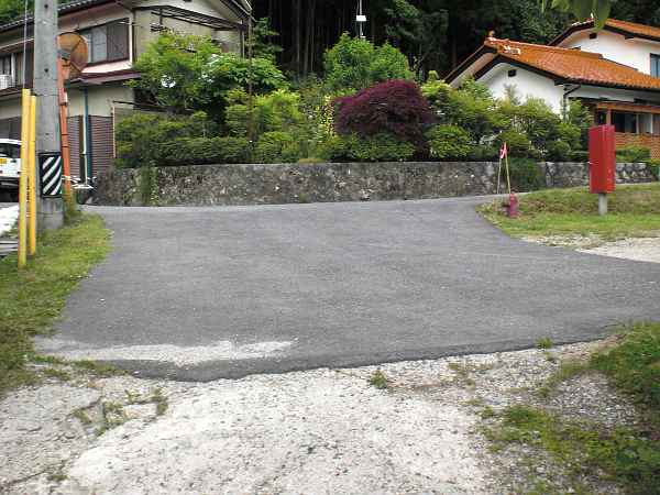 ちょっとした集落を抜けると、国道方面から上ってきた道と合流し、大きく右にカーブする(右・左写真=12:11)。