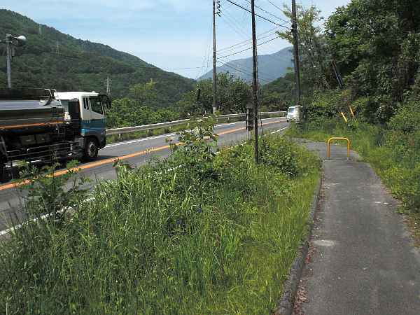 ガードレールの切れ目には「入るべからず」とある。国道を行く。