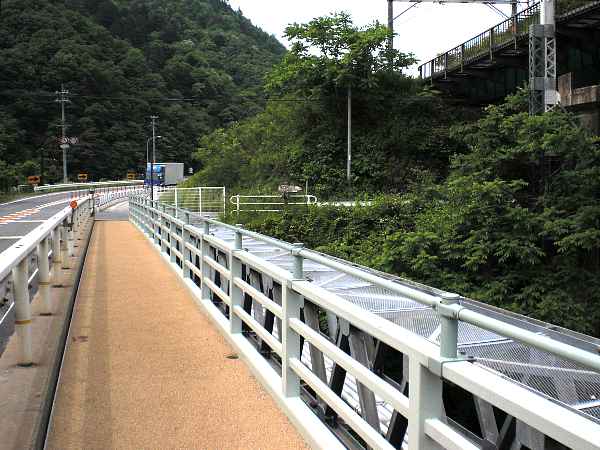 左側(木曽川寄り)に、ず~っと側道があり、安全に歩ける。