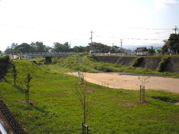 現在は一部でこの天井川も取り除かれ平坦な道路へと変貌している。ただ堤防の遊歩道は橋が架けられ琵琶湖まで続いているのだが・・・。