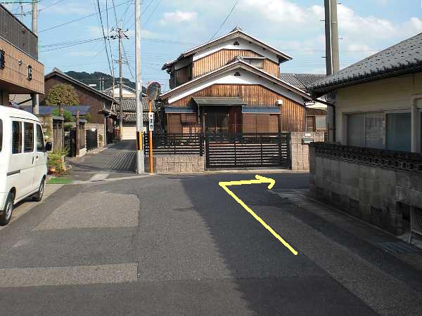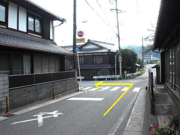 [石部西]という信号を過ぎて程なく、紛らわしい三叉路に来る。ここは元々突き当たりの枡形であったが、