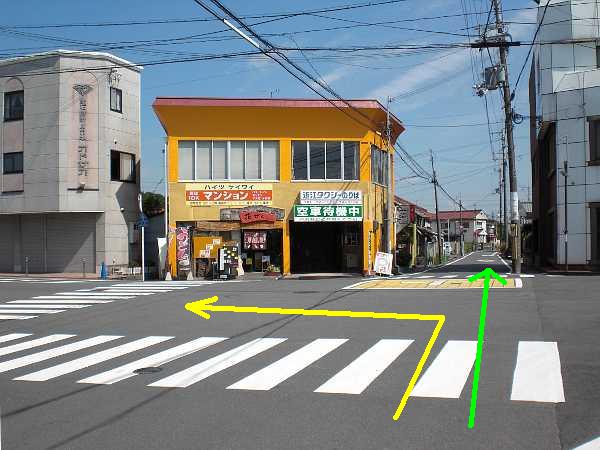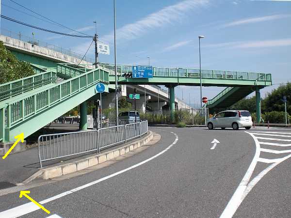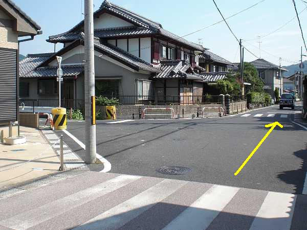 右側は側道が無く渡れないので注意)