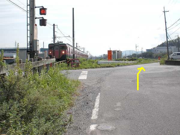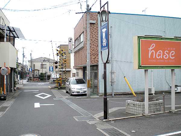 しばらくすると踏切が見えてくる(右・右写真)。ここが本日の終着地点。右手にちょっと入った所に近江鉄道「