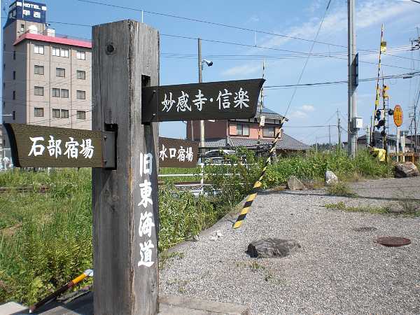 ここから先は直進して7、800m先の渡しを渡るのが本来の旧東海道であるが、現在ではそのすべなく、左折して国道一号線の「