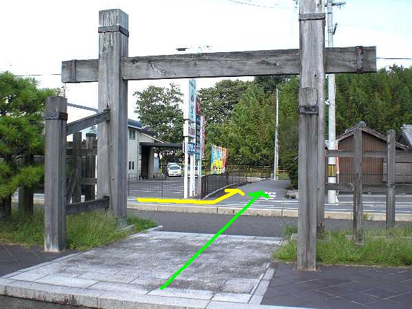 ゲートをくぐり出発(右・右写真=14:01)。迂回してきた535号線から言えば左折である。