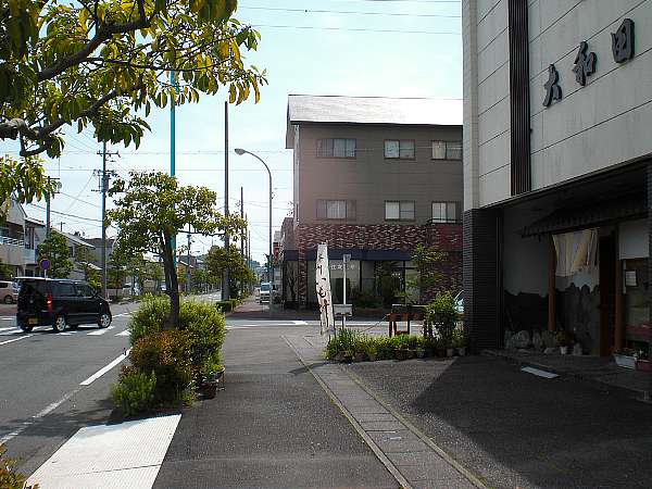 駅前[本通り2丁目]の信号を過ぎると,一筋目と二筋目の中間辺りの街道左側(ホテル三布袋前)に,