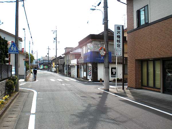 50mほど行くと右側に「塩沢機械店」という看板が見える(左・左写真=9:19)。この十字路を