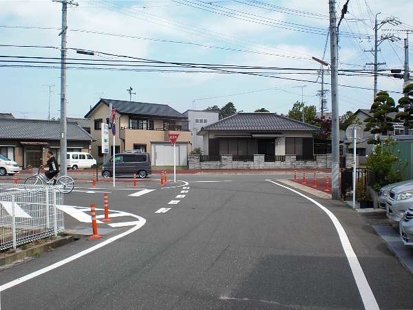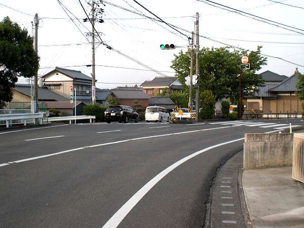 合流したばかりの国道一号線はここで右折してバイパスと合流し,我々の進む旧東海道は,旧一号線である県道415号線へと変わる。