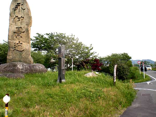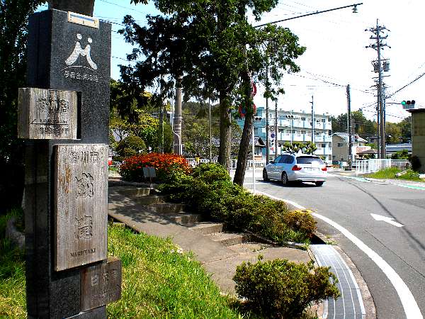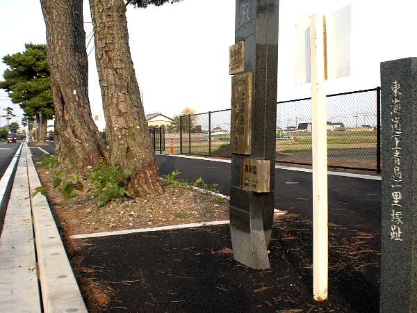 市街地を出て少し開けた所に松並木の残る広い歩道がある。その立派な松の根元に「