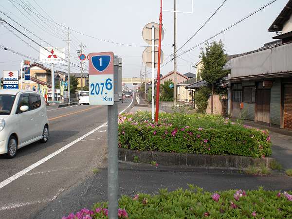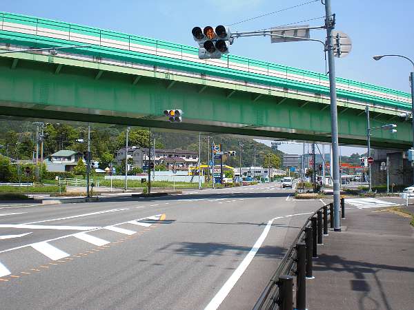 又ゆったりと左カーブしてついに国道一号線をかなり斜めの角度で横断する。