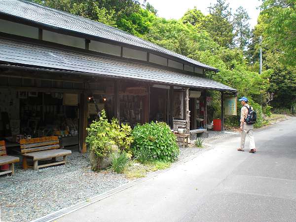 小夜(佐夜)の中山の峠には土産物屋「扇屋」がある(左・右写真=12:29)。