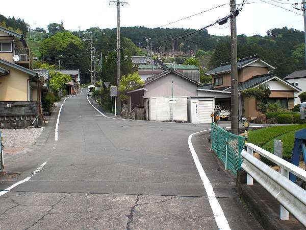 集落が近づくと国道(473号線)との交差のために出来た段差を迂回し住宅街を下る(左・右写真=14:06)。