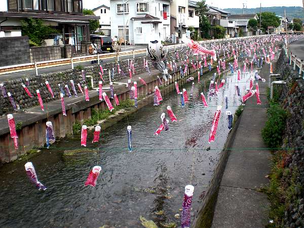 「清水橋」を渡るとき,あまりに沢山の鯉のぼりに思わずシャッターを切った(左・右写真=14:31)。