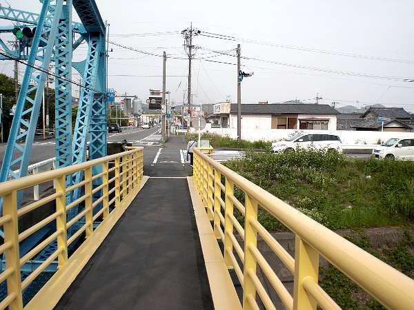ここからしばらくは歩くことに専念できる。次のポイントは国道一号線との合流地点,[本村橋]交差点(右・右写真=9:53)である。